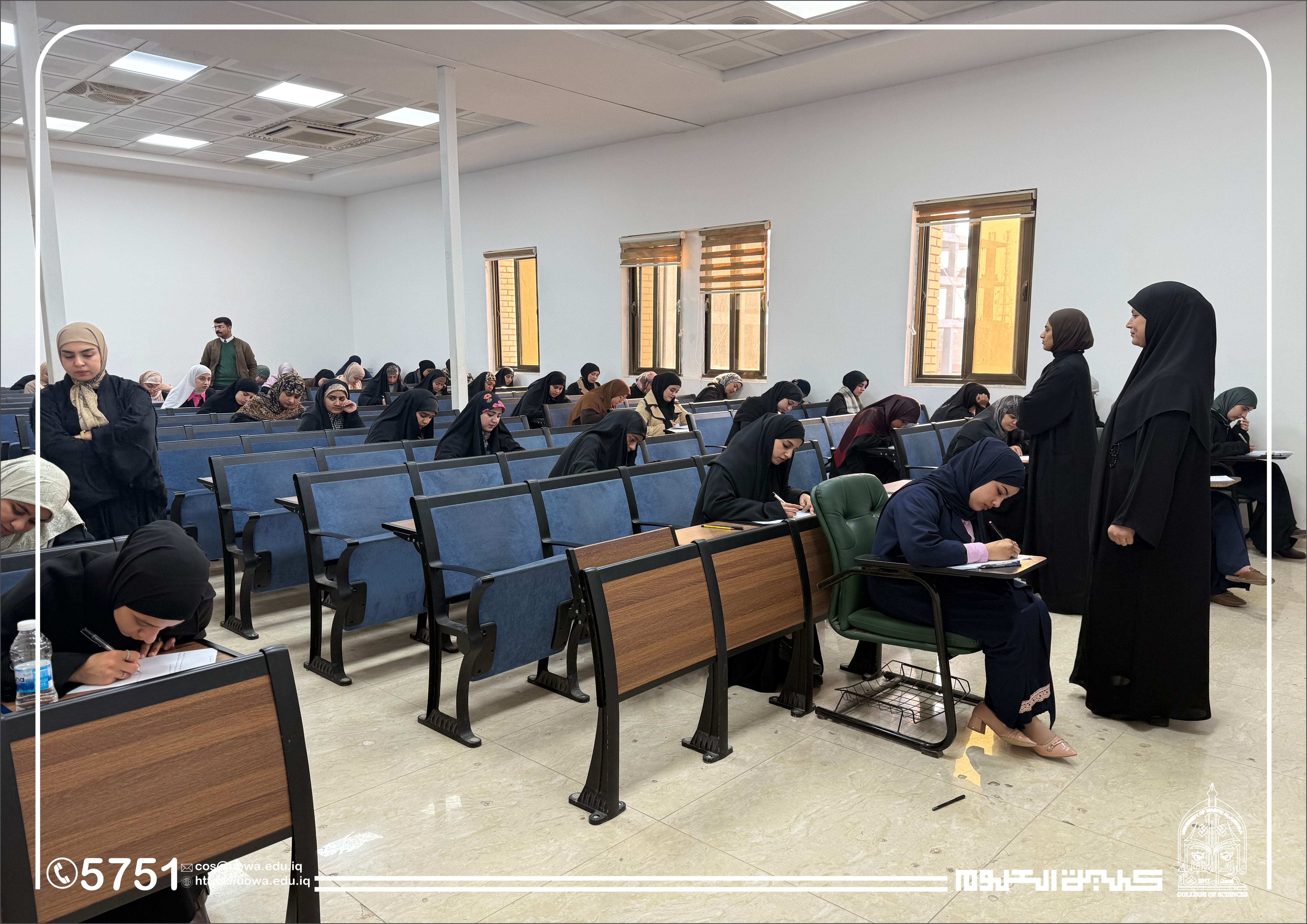 في إطار متابعته المستمرة للمسيرة العلمية وتوفير البيئة الامتحانية الملائمة، أجرى السيد عميد كلية العلوم في جامعة وارث الأنبياء (عليه السلام) جولة تفقدية للقاعات الامتحانية، وذلك لمتابعة سير امتحانات منتصف الفصل الدراسي (Midterm) لطلبة المرحلة الأولى في قسمي الفيزياء الطبية و الأدلة الجنائية.