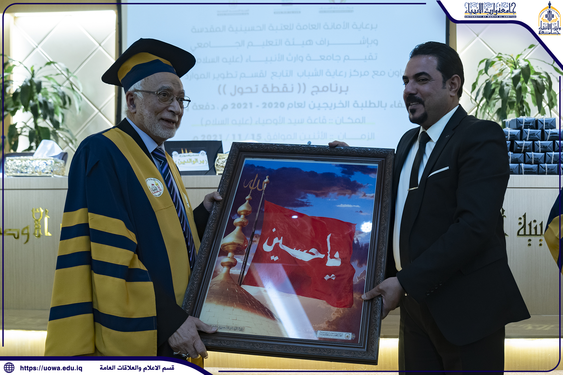 برعاية الامانة العامة للعتبة الحسينية المقدسة نظمت جامعة وارث الانبياء(عليه السلام)وبالتعاون مع مركز رعاية الشباب حفل تخرج مركزي للدفعة الأولى من طلبتها الاعزاء والتي حملت عنوان (دفعة وارث الاولى) .