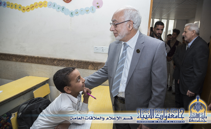 من اجل دعم مسيرة رعاية الايتام والمساهمة في بناء شخصية الطالب الجامعي زار وفد من اساتذة وطلبة جامعة وارث الانبياء مدارس علي الاصغر والسيدة رقية (عليهما السلام)للايتام، وقال الاستاذ الدكتور طالب حسن موسى رئيس الجامعة ان الاطفال الايتام هم مستقبلنا في العراق وهذه الزيارة هي بداية الطريق من اجل تعاون اوثق مع هذه الشريحة المهمة ، وعبر طلبة الجامعة بان هذه الزيارة جائت بمثابة العرفان لأيتام الشهداء الذي ضحو عن الوطن والمقدسات وان الاهتمام بهم واجب علينا جميعا