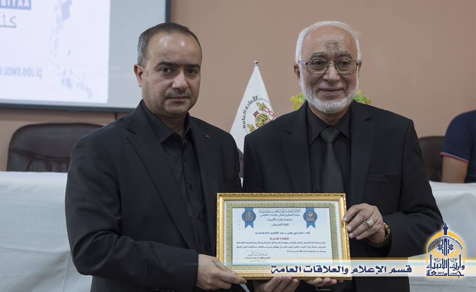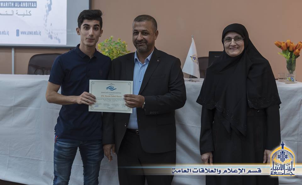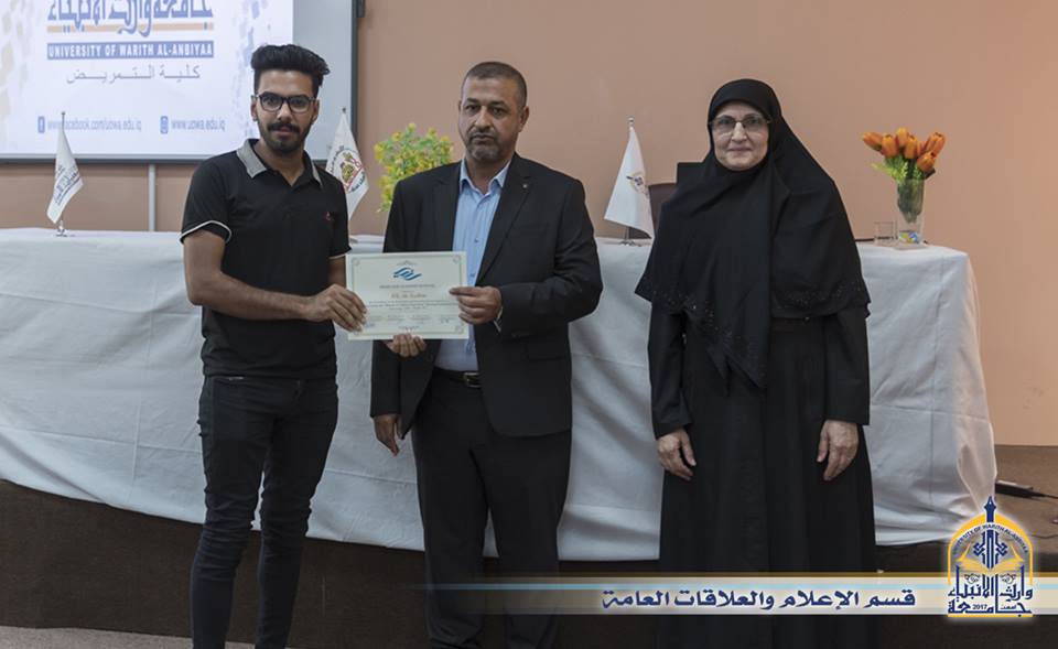 أقامت جامعة وارث الأنبياء حفل تكريم للطلبة المتميزين من كلية التمريض حيث ذكر الدكتور خميس البندر عميد كلية التمريض في جامعة وارث الأنبياء أن حفل التكريم وتوزيع الشهادات التقديرية للطلبة جاء نتيجة لتميزهم في الدورة التدريبية الأولى التي اقيمت في مستشفى الأمام زين العابدين(ع) تحت اشراف الاخوة من الكادر اللبناني في المستشفى وأضاف انها دورة متميزة بتقيمها العالي والمهارات التي اكتسبها الطلبة والتزامهم الواضح وحب التعلم الذي ابداه المشتركون بالدورة وعلى مدى شهرين متواصلين وهي فرصة لاتتكرر في كثير من الكليات لأن الجامعة وفرت فرصة التدريب الصيفي لطلبة المرحلة الاولى على خلاف بقية الجامعات , وبين البندر أنه قد تم اختيار بعض من الطلبة المتميزين من قبل ادارة المستشفى للتعيين بصفة مساعد ممرض في مستشفى الأمام زين العابدين, وقد تقدم عميد كلية التمريض بالشكر والعرفان الى هذا التعاون المبارك والى كل من ساهم في انجاح الدورة ووعد بأنها ستكون اكثر شمولية ونضوجا في الاعوام المقبلة.