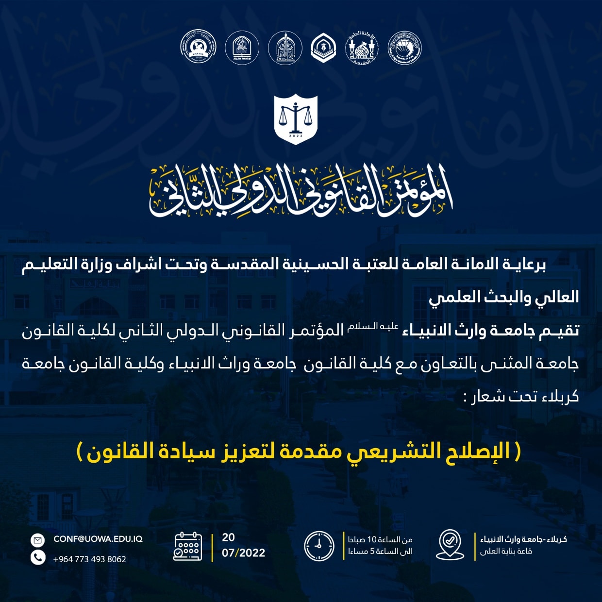 ينعقد المؤتمر في رحاب جامعة وارث الأنبياء (عليه السلام) بتأريخ 20-7-2022