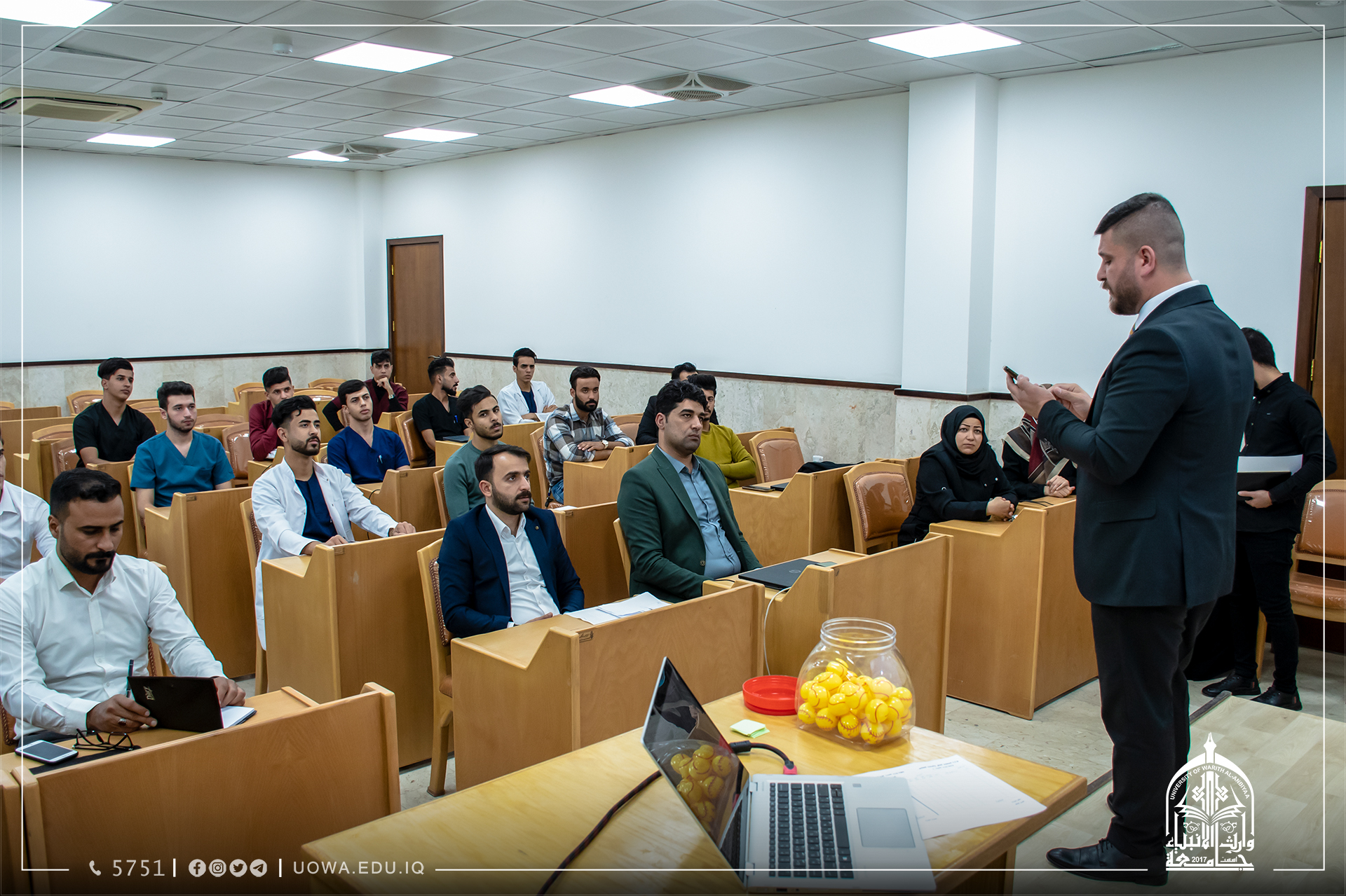 اقام قسم النشاطات الطلابية في جامعة وارث الانبياء(عليه السلام) اجتماعه الفني مع أعضاء لجان النشاطات الطلابية في الكليات وممثلي الطلبة المشاركين في البطولة في كليات واقسام الجامعة لاجراء قرعة بطولة وارث الانبياء السنوية لخماسي كرة القدم.