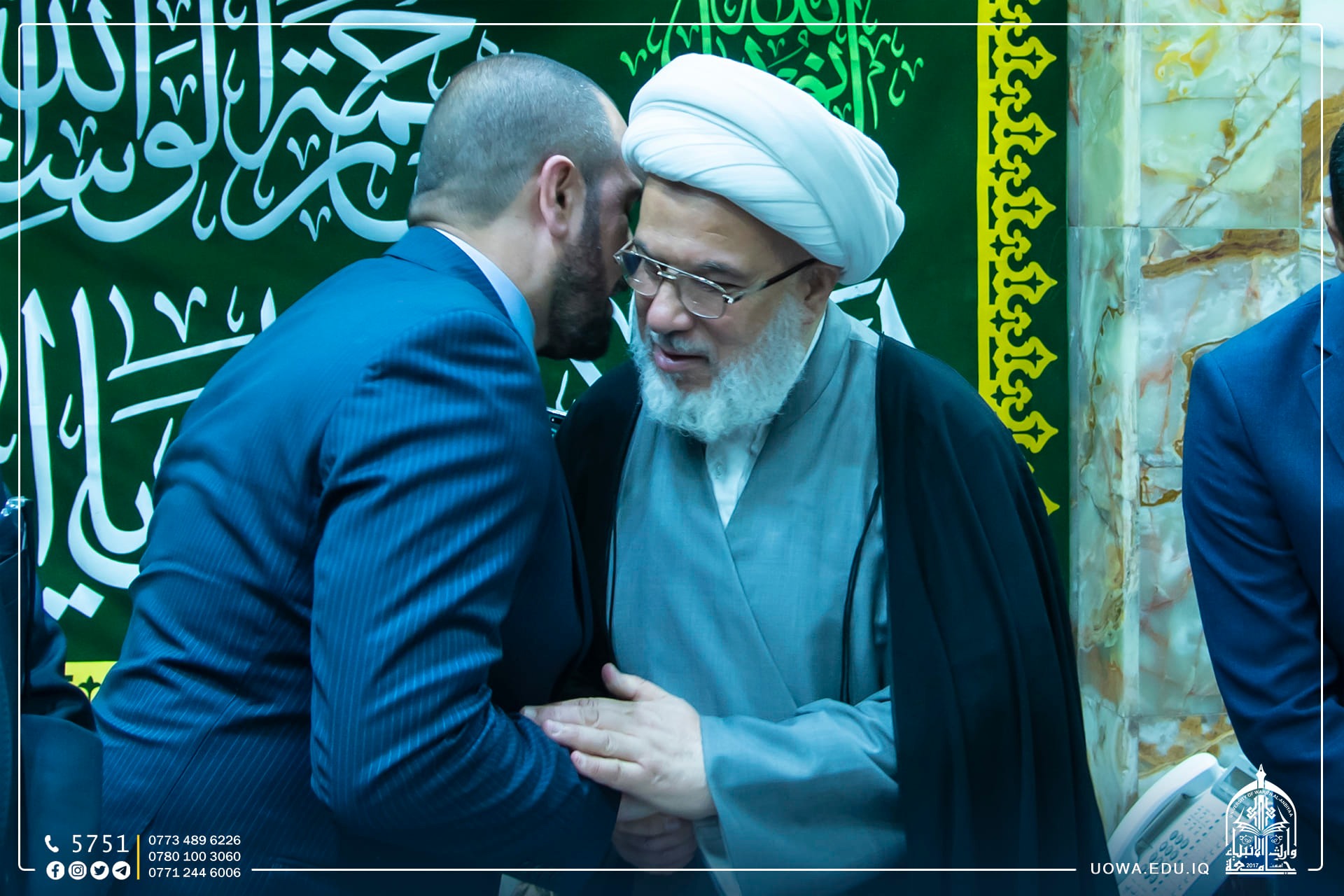 وفد رئاسة الجامعة التكنلوجية يتشرف بلقاء المتولي الشرعي للعتبة الحسينية المقدسة سماحة الشيخ عبد المهدي الكربلائي(دام عزه)، على هامش زيارتهم الى جامعة وارث الانبياء.