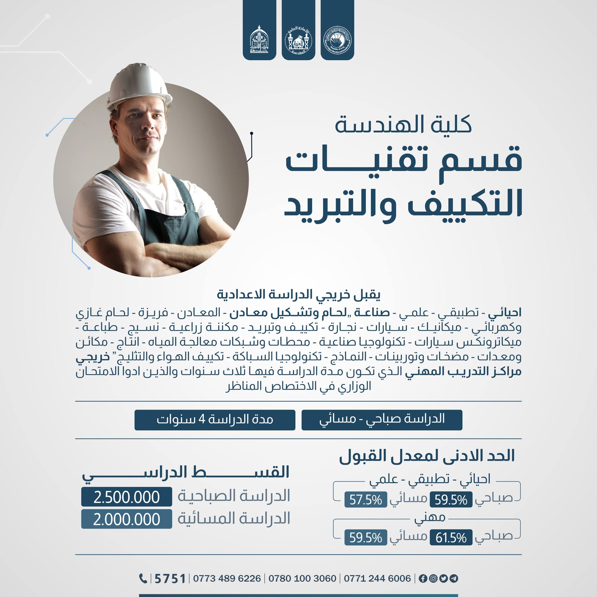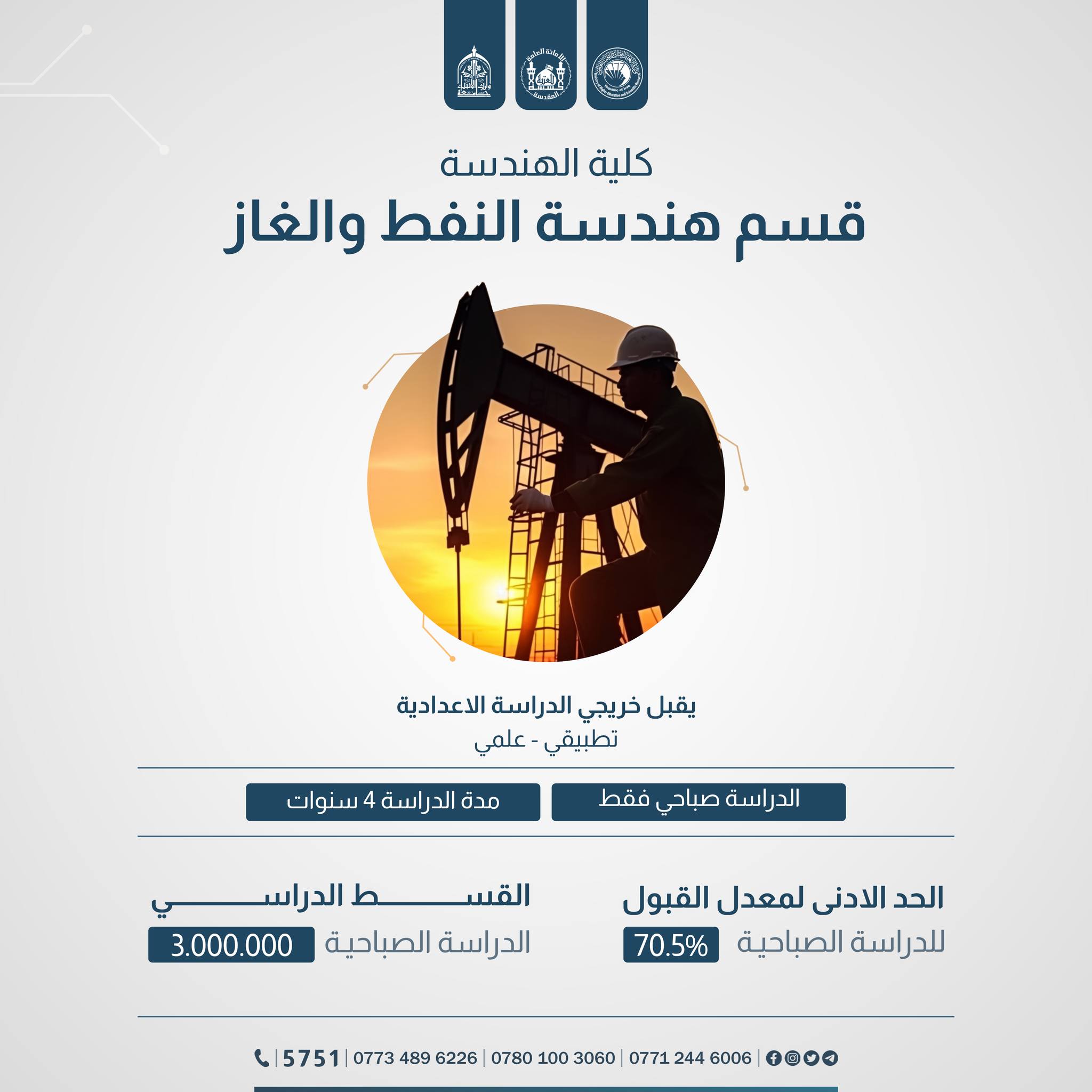 الى الطلبة الإعزاء الراغبين بالتقديم على #كليةالهندسة في جامعة وارث الانبياء(عليه السلام) #تعرفوا على آخر التحديثات في المعدلات والمدخلات خلال #الأسبوع_الأخير من الفترة الرسمية للتسجيل.
