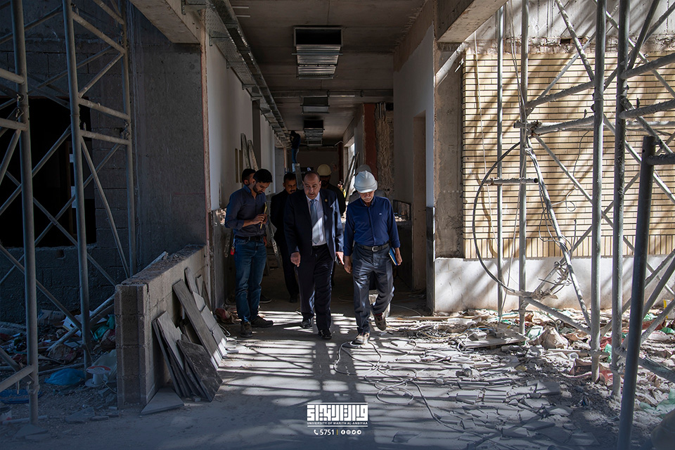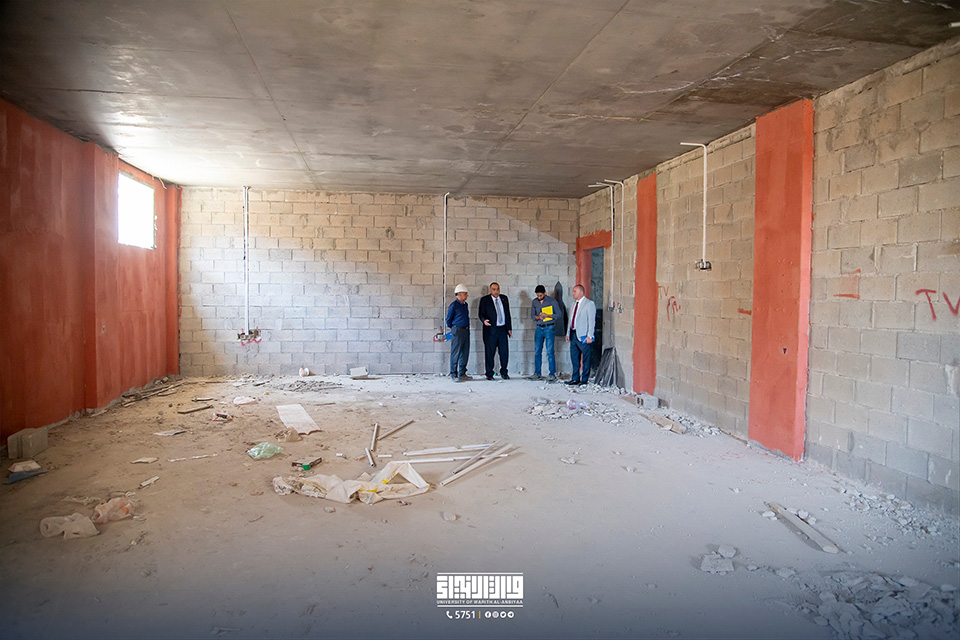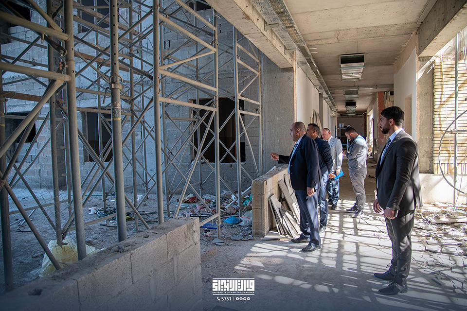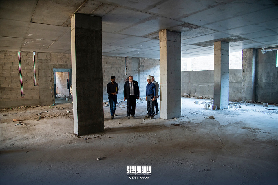 تفقد السيد رئيس الجامعة الأستاذ الدكتور إبراهيم سعيد الحياوي، مبنى الأقسام الداخلية للطالبات برفقة عدد من مهندسي الشركة المنفذة. تأتي هذه الجولة للاطلاع على تقدم الأعمال والإنجازات التي وصلت إلى مراحل متقدمة، حيث تسعى الجامعة إلى إنشاء مبانٍ جديدة تكفي لاستيعاب أعداد الطالبات المتزايدة.