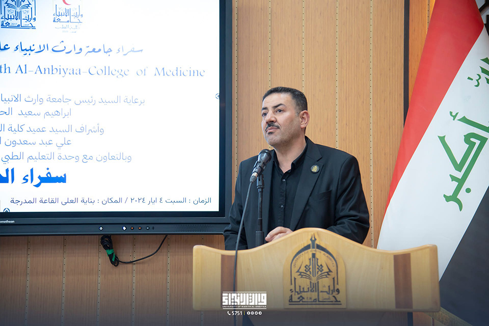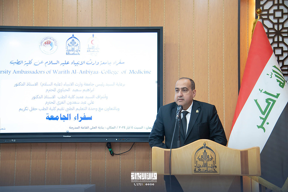 برعاية السيد رئيس الجامعة، الأستاذ الدكتور إبراهيم سعيد الحياوي، وبحضور عميد كلية الطب، الأستاذ الدكتور علي عبد سعدون الغزي، أطلقت عمادة كلية الطب بالتعاون مع فريق "وارث Elevate" وقسم ضمان الجودة والأداء الجامعي مشروع )إعداد واختيار سفراء الجامعة من طلبة الطب(، الذي يهدف إلى تمثيل الجامعة والبلد سواء محلياً أو دولياً.