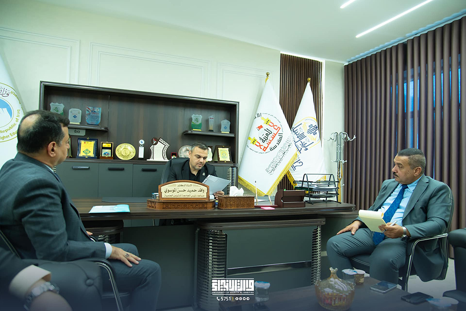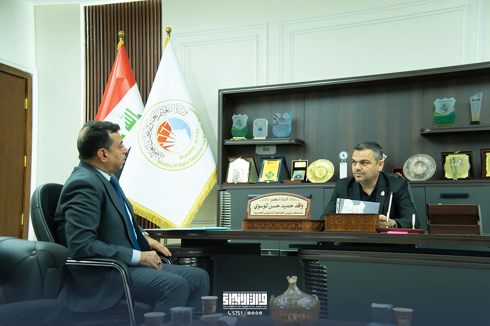 استقبل المساعد العلمي لجامعة وارث الأنبياء عليه السلام، الأستاذ الدكتور واقد حميد الموسوي، عميد معهد الهندسة الوراثية والتقنيات الأحيائية للدراسات العليا، الأستاذ المساعد الدكتور سيف داود الأحمر، في إطار التحضيرات لعقد المؤتمر السادس للمعهد.