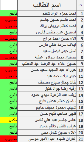 نتائج امتحانات الكورس الاول قسم المحاسبة المرحلة الثانية للدراسة المسائية