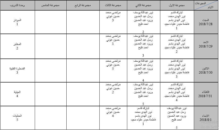 تم تنفيذ برنامج التدريب الصيفي لطلبة قسم هندسة الطب الحياتي للفترة من 1/7/2018ولغاية 25/7/2018 وذلك في مستشفى الامام زين العابدين (ع) التابعة للعتبة الحسينية المقدسة وباشراف مشترك من قبل كوادر القسم والمستشفى وكانت التجربة ناجحة علميا وتطبيقيا بشكل تثير الاعجاب وخاصة تفاعل الطلبة وحسن سلوكهم والتزام وحرصهم على التعلم وكسب الخبرة العلمية....