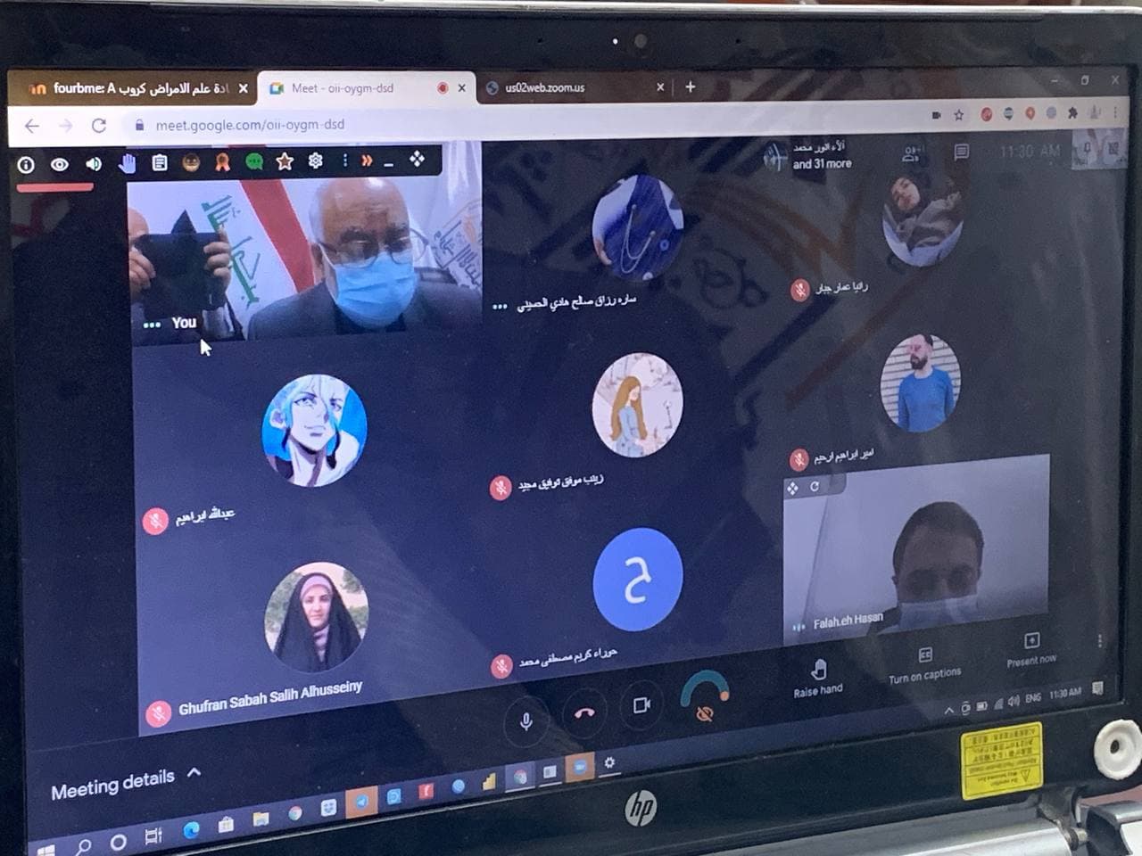 2. على جميع الطلبة التأكد من اسمائهم الرباعية الصحيحة في منصة Google meet وإبلاغ رئيس القسم في حال وجود خطأ.