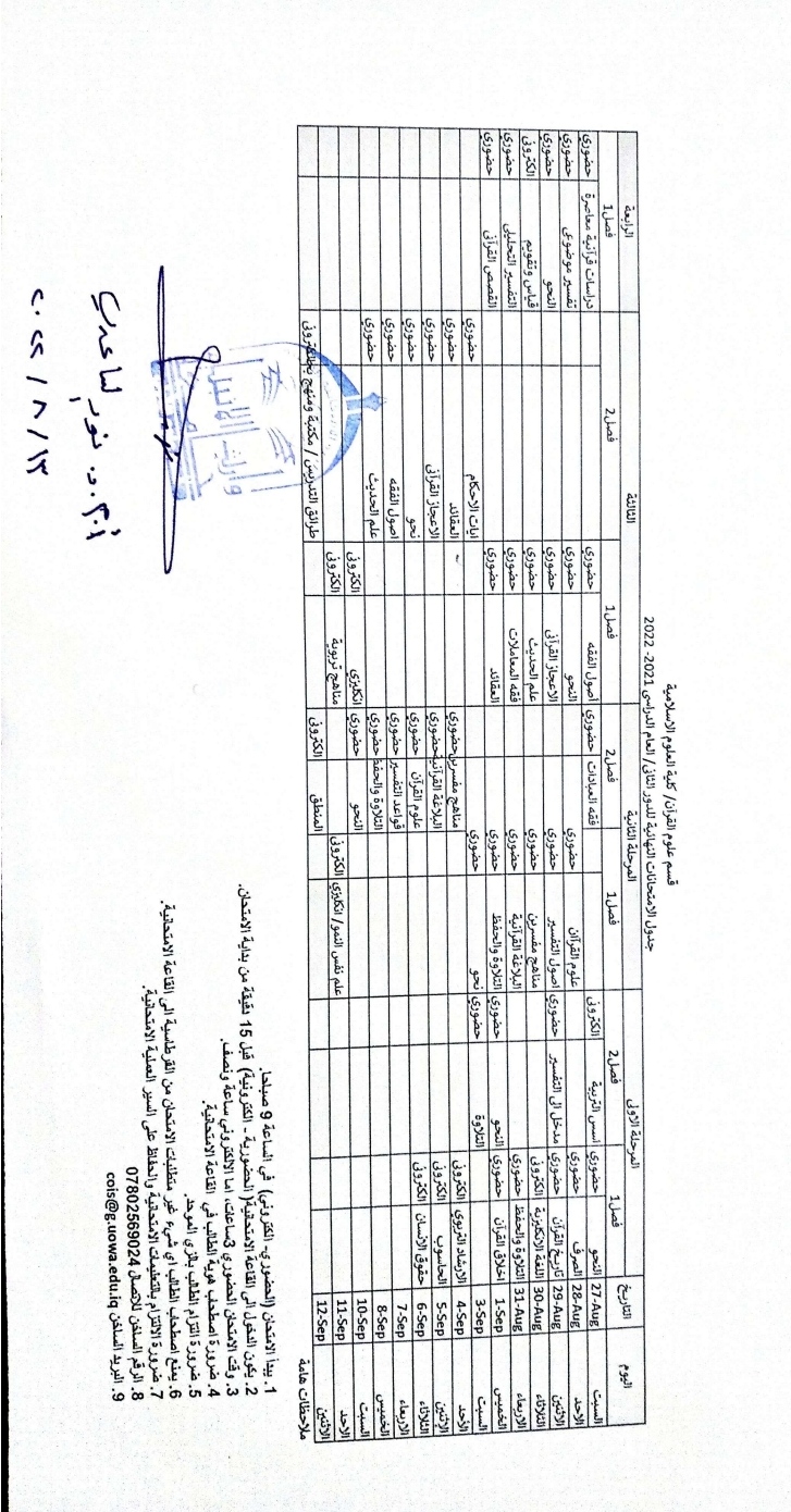 جدول امتحانات الدور الثاني لقسم علوم القرآن