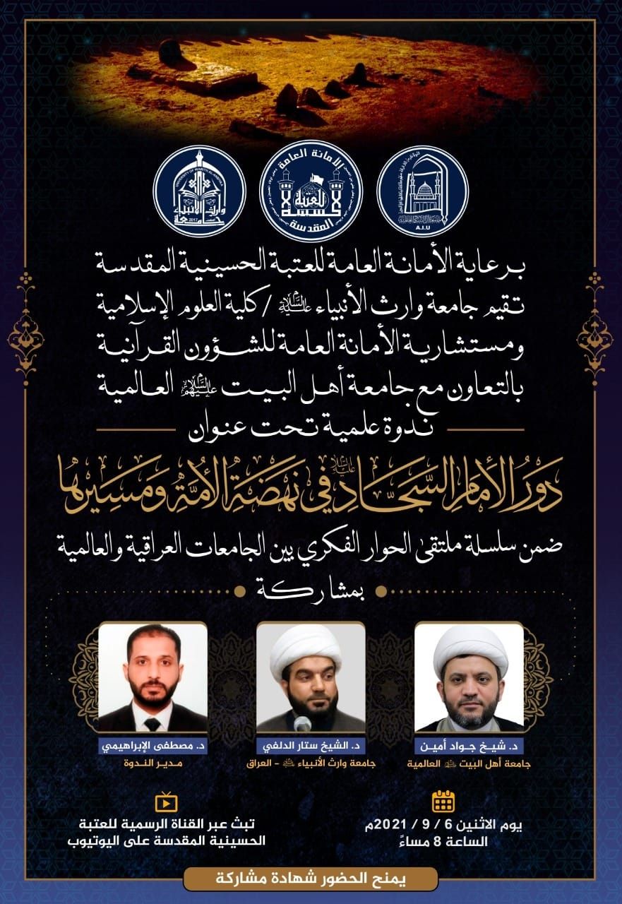 تقيم جامعة وارث الأنبياء (عليه السلام) *كلية العلوم الإسلامية*ومستشارية الأمانة العامة للشؤون القرآنيةبالتعاون مع *جامعة أهل البيت (عليهم السلام) العالمية*