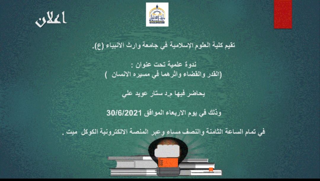 ضمن الخطة العلمية لكلية العلوم الاسلامية في جامعة وارث الانبياء للعام 2020-2021.