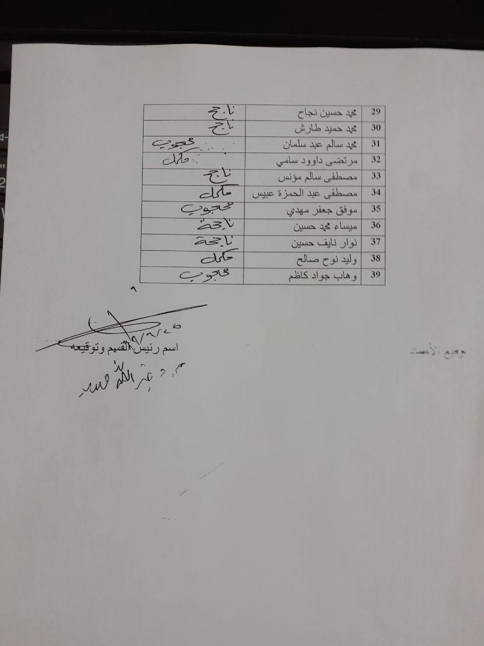 اسماء الطلبة المشمولين بالدور الثاني للدراستين الصباحية والمسائية للعام الدراسي 2018-2019