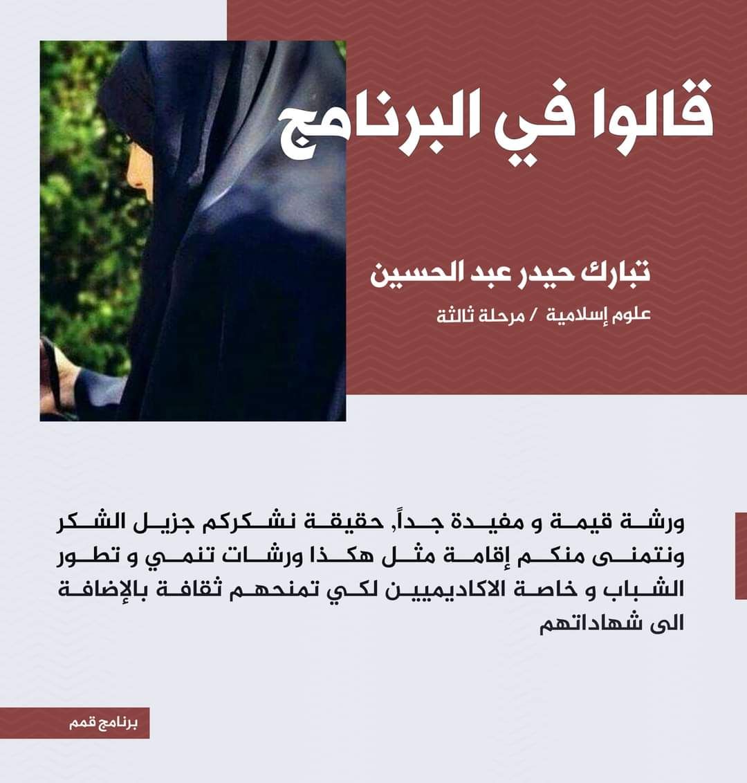 كلية العلوم الإسلامية بجامعة وارث الأنبياء تطلق النسخة الرابعة من نشاطها السنوي «حبًّا بالحسين» احتفاءً بولادة الأقمار المحمدية