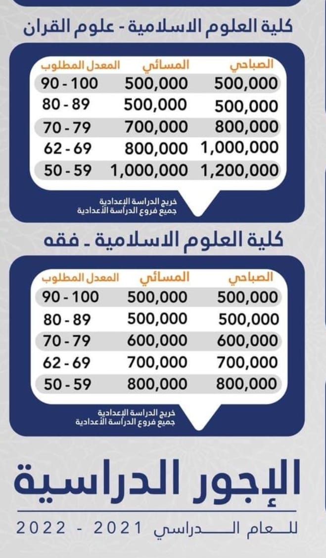 علما أن القسط الدراسي لقسم العلوم المالية والمصرفية 1200.000