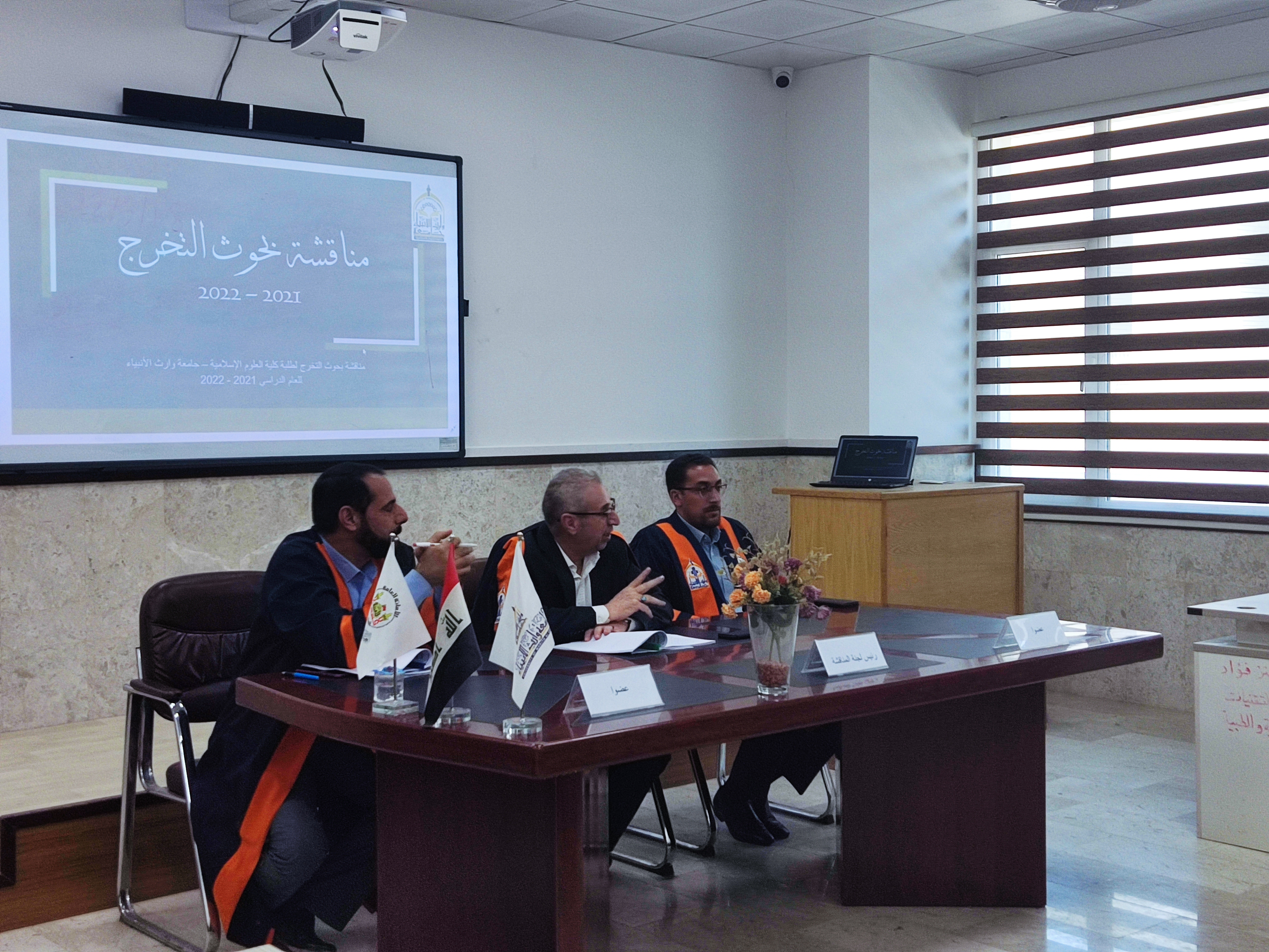 شرعت كلية العلوم الإسلامية في جامعة وارث الانبياء المباشرة في مناقشة بحوث التخرج لطلبة المرحلة الرابعة لقسمي علوم القران الكريم والفقه وأصوله للعام الدراسي 2022 .