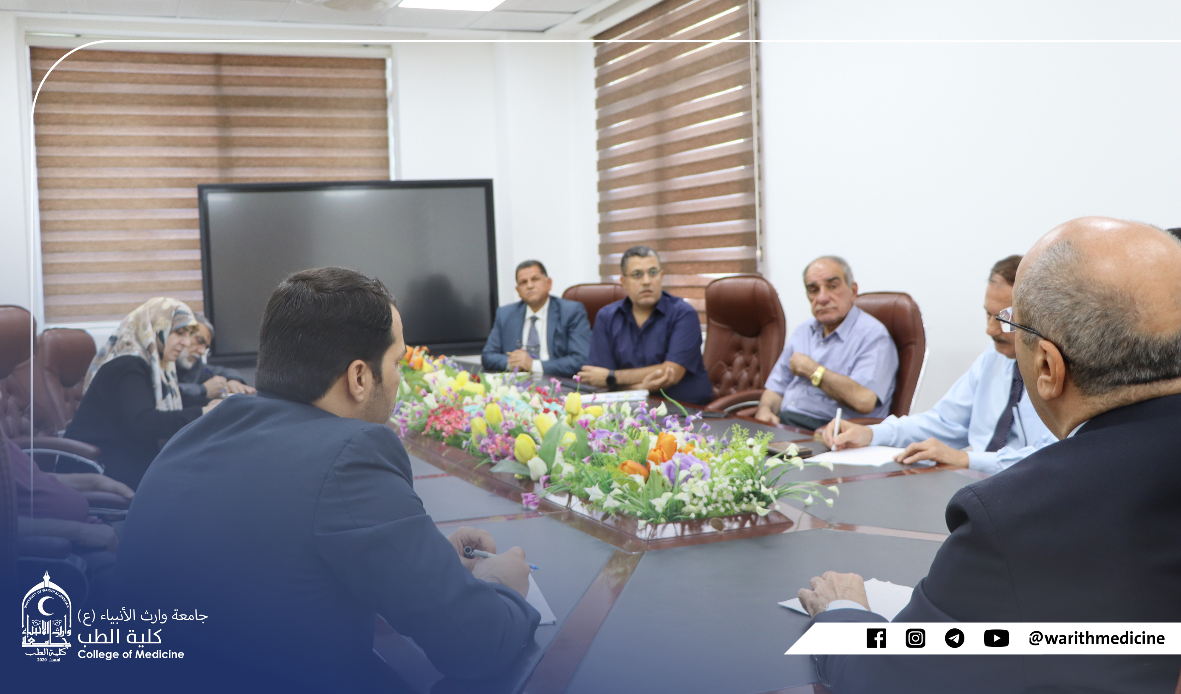 عقد مجلس كلية الطب في جامعة وارث الانبياء عليه السلام برئاسة الأستاذ الدكتور احمد عباس العزاوي عميد الكلية وحضور معاوني العميد للشؤون العلمية الدكتور علي الساعدي والشؤون الادارية الدكتور اسعد عباس الدعمي ورؤساء الفروع العلمية