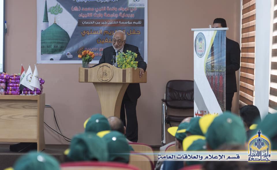 احتضنت جامعة وارث الانبياء احتفال مؤسسة (القليل خير من الحرمان الخيرية )بالأطفال الايتام الذين بلغوا سن التكليف الشرعي من الذكور والإناث ،وقال رئيس المؤسسة ازهر علي الركابي نحن اليوم سعداء جدا لأننا في رحاب جامعة وارث الأنبياء ونحن نحتفل بابناء المؤسسة من العوائل المتعففة والأيتام ببلوغهم سن التكليف الشرعي وان احتضان الجامعة لهذا الحفل هو طفرة نوعية وثقافية غايتها رسم صورة للأيتام الإعزاز ان صورتهم المستقبلية هي الجامعة وهي مكانهم ،وايضا لرد الجميل للذين ضحوا من اجل هذا الوطن وترك بصمة في نفوس هؤلاء الأعزاء، واختتم الحفل بتكريم الأعزاء بالهدايا