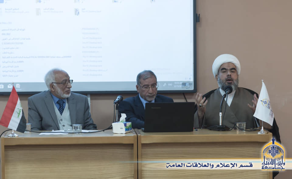 وقد كان للدكتور عميد كلية العلوم الإسلامية (طلال فائق الكمالي) الدور البالغ في إحتضان هذه الندوة حرصاً على نشر الوعي والثقافة الدينية لطلاب كلية العلوم الإسلامية بوصفهم أفراداً ينتمون للدين الإسلامي فيكون من الضروري تسلحهم بالعلم بغية إرساء الثقافة التي ترسي معالم الوضوح وبيان الحجة التي يتمسك بها العقل السليم .