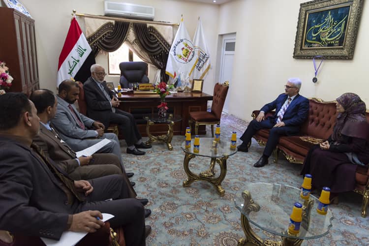 من اجل توسيع افاق التعاون العلمي والأكاديمي التقى رئيس الجامعة الاستاذ الدكتور طالب حسن الموسوي بعميد كلية الحقوق في المملكة الأردنية الهاشمية الدكتور عمر محمود اعمر الذي أبدى اعجابه بالجامعة وبالبنى التحتيه لها ، وعبر عن أمله في ان يتم التعاون بين كلية الحقوق في الاردن وجامعة وارث الأنبياء