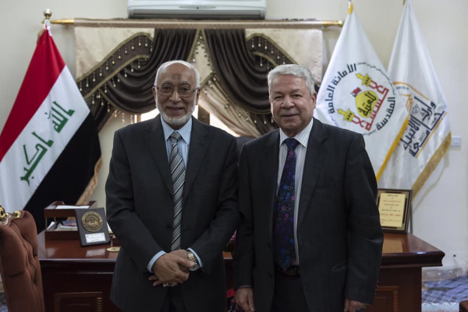 حرصاً من #جامعة_وارث_الانبياء_التابعة_للعتبة_الحسينية_المقدسة على تحقيق الرصانة العلمية ورفد الكادر التدريسي في الجامعة بكفاءات عراقية وعربية ، التقى الاستاذ الدكتور طالب حسن الموسوي رئيس الجامعة بالأستاذ الدكتور علاء حسين الحمامي عميد كلية الحاسوب في المملكة الأردنية الهاشمية حيث تم التبحاث في مدى استفادة من الكفاءات العراقية المهاجرة وأبدى الحمامي استعداده الكامل لخدمة جامعة وارث الأنبياء والعتبة الحسينية المقدسة.