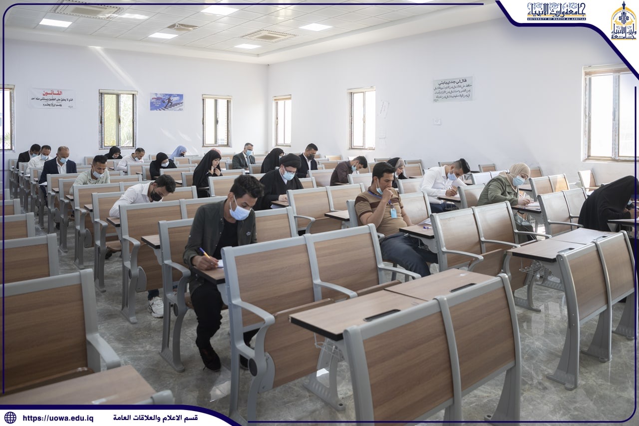 جانب من القاعات الامتحانية لقسم التكييف والتبريد في جامعه وارث الأنبياء ليوم الثلاثاء المصادف ٦ / ٤ / ٢٠٢١ والذي يعكس صوره مثاليه لتطبيق التباعد الاجتماعي والالتزام بارتداء الكمامات تنفيذا لقرارات خلية الأزمة لمنع تفشي فيروس كورونا.