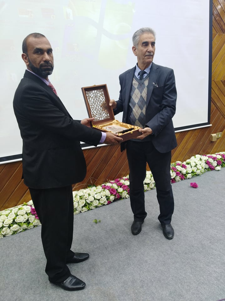 تكريم عميد كلية التمريض أ.م.د.خميس بندر من قبل كلية ابن حيان الجامعة خلال مشاركته في المؤتمر العلمي الذي اقيم في رحابها.