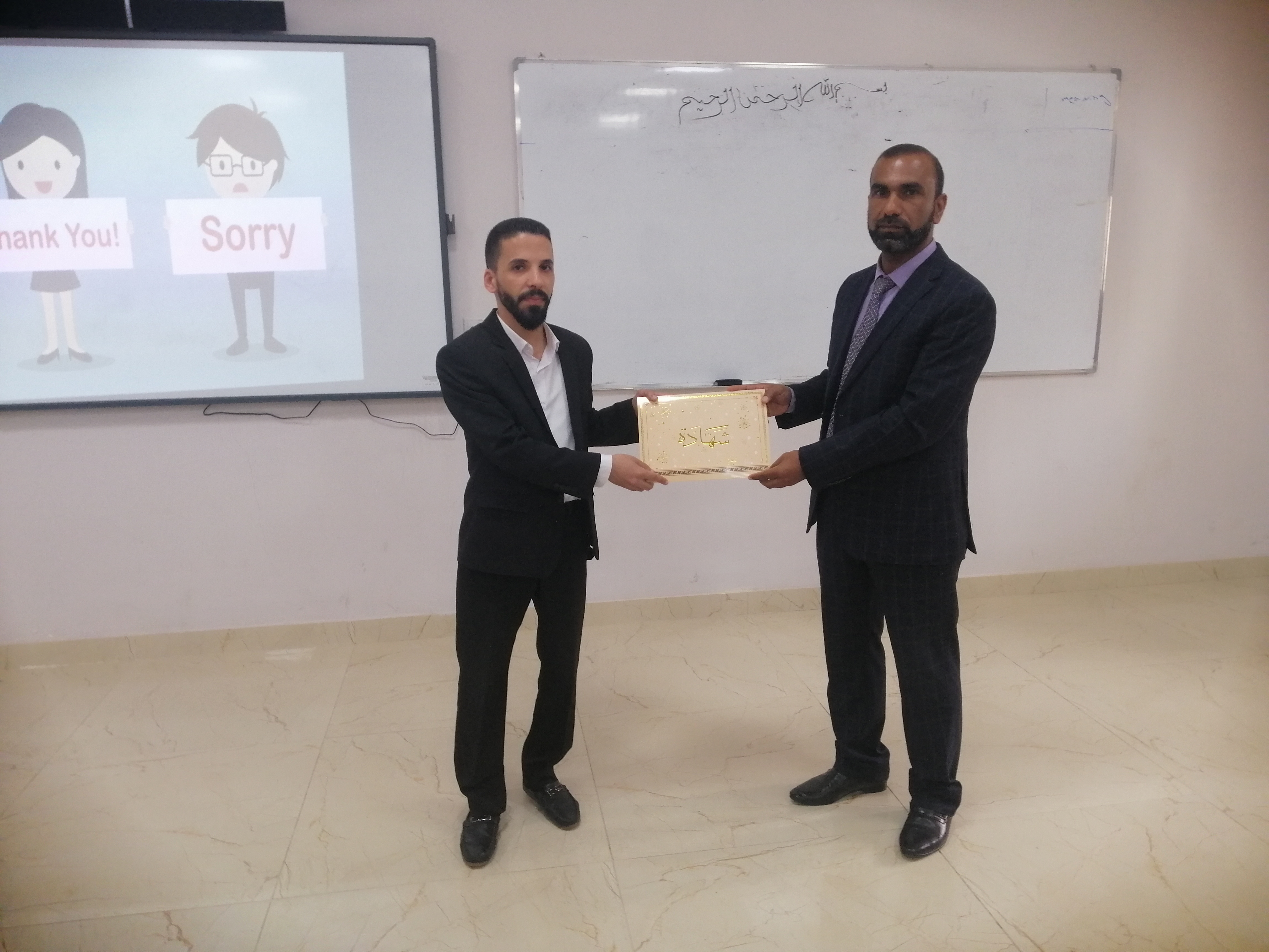 اختتمت الورشة بتقديم العميد أ. م. د. خميس بندر عبيد كتاب شكر وتقدير للاستاذ بهاء الدعمي على اقامته الورشه.