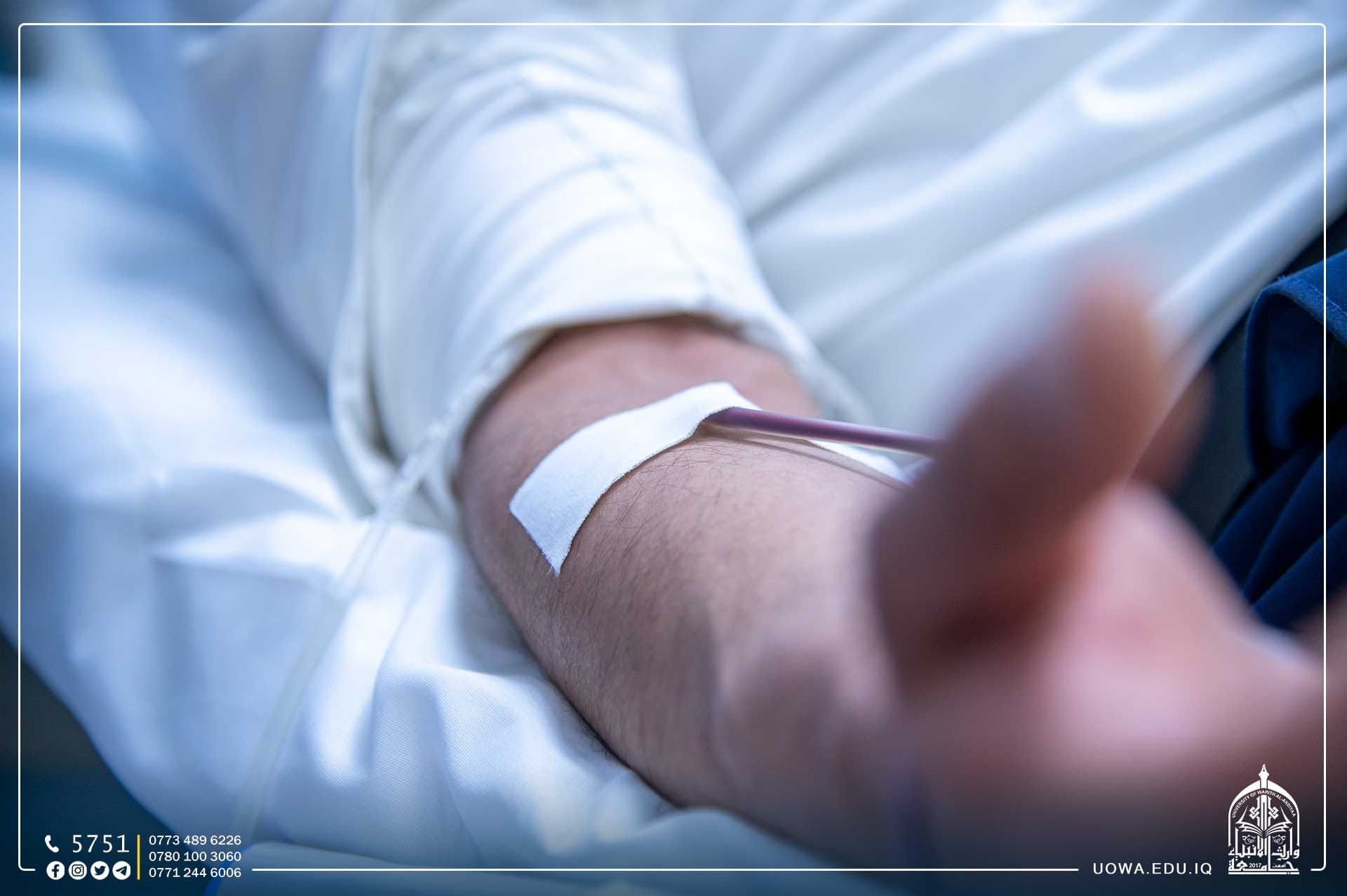 اقامت عمادة كلية التمريض وبالتعاون مع دائرة صحة كربلاء المقدسة/ مصرف الدم، حملة إنسانية للتبرع بالدم بمناسبة الولادات الشعبانية المباركة، اسهاماً من الجامعة لمساندة المرضى في مستشفيات كربلاء المقدسة ممن هم بحاجة لنقل الدم.