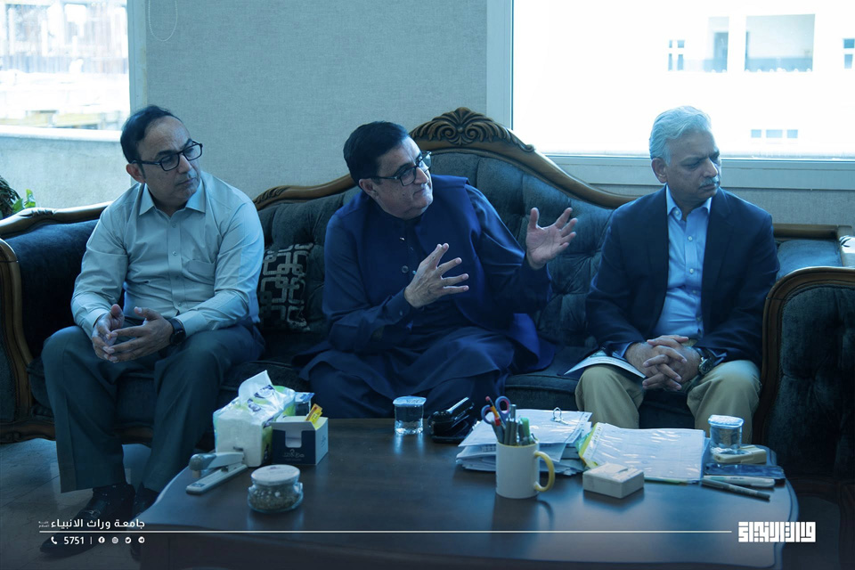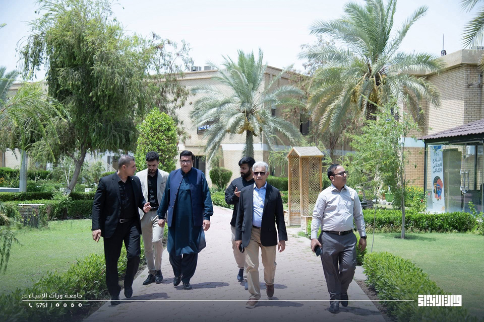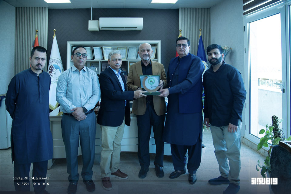 University of Warith Al-Anbiyaa (peace be upon him) welcomed an official delegation from the Rahmat Lil Aalameen Authority of Pakistan, received by the Assistant President of the University, Prof. Dr. Naufel Al-Araji, and the Dean of the College of Medicine, Prof. Dr. Ali Al-Ghizzi. The visit aimed to explore the university’s academic experiences and its modern infrastructure.