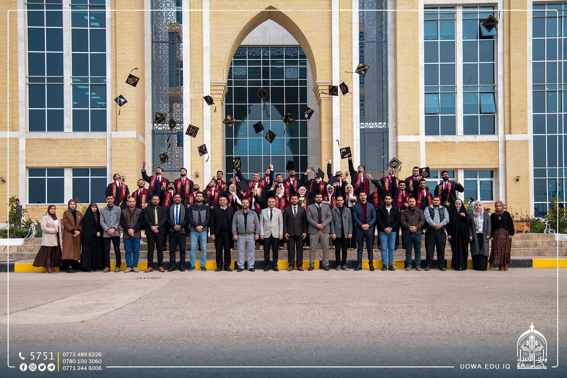 Graduation photos of Engineering College students, Department of Civil Engineering at Warith Al-Anbiyaa University accompanied by faculty members and their families. We wish all our dear students success in their academic lives.