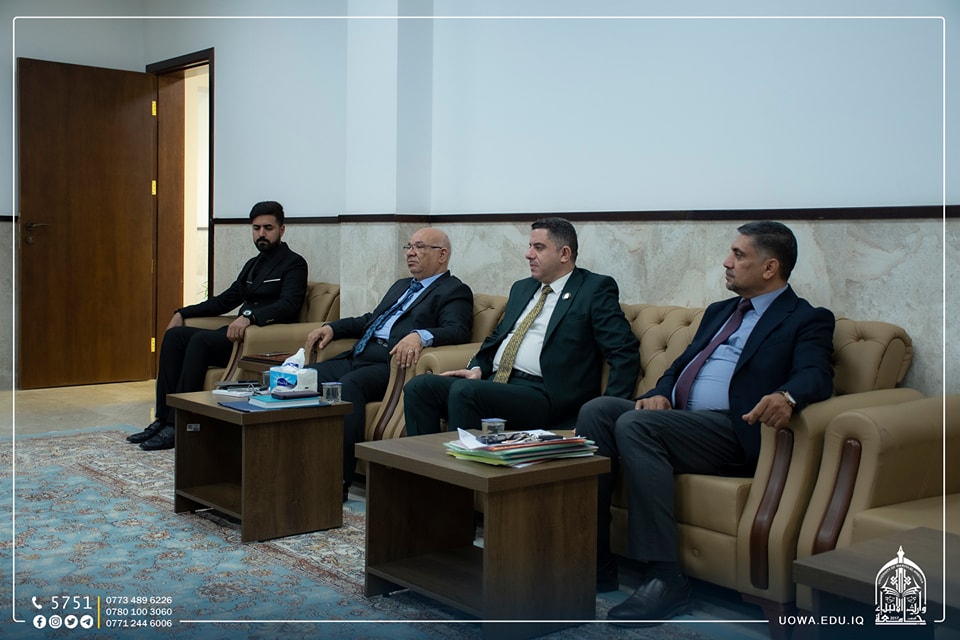 The delegation was received by Mr. Ibrahim Al-Hayawi, the President of the University, along with Dr. Munir Al-Daami, the head of the Academic Union Branch in Karbala, and Sheikh Rabaah Hussein Al-Rabaah, a legal expert.