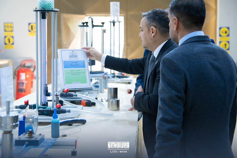 Professor Ibrahim Al-Hayawi, President of the University of Warith Al-Anbiyaa (peace be upon him), conducted a field inspection tour with Professor Waqad Al-Mousawi, Assistant Scientific, and Professor Hussein Hadi Al-Awadi, Dean of the College of Engineering. The aim of the tour was to assess the needs of engineering workshops and equipment. Various workshops and engineering facilities at the college were explored during the tour, evaluating the requirements for laboratory devices and engineering equipment necessary to enhance and improve the educational and research process at the college. This comes within the university's commitment to providing a distinguished educational environment and equipping engineering workshops with everything necessary to meet the needs of students and researchers, and to enhance progress and advancement in the fields of engineering and technology.