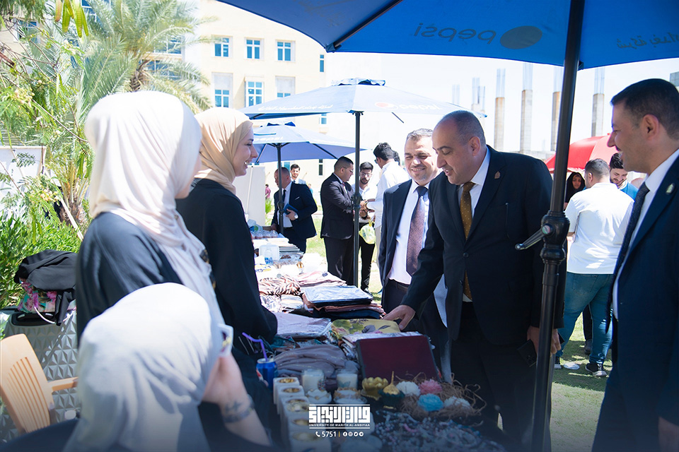 A charitable bazaar was conducted in the university gardens, with the participation of the Iraqi Association of Medical Students, the Deanship of the Faculty of Medicine at the University of Warith Al-Anbiyaa (PBUH), and the University President, Professor Dr. Ibrahim Al-Hayawi.