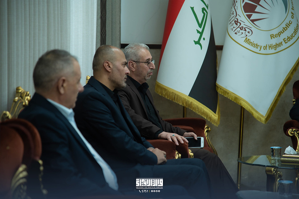 Professor Ibrahim Saeed Al-Hayawi, President of the University of Warith Al-Anbiyaa (PBUH), and Professor Dr. Waqid Al-Moussawi, Vice-President for Scientific Affairs, received Chairman of the Higher Committee for Cultural and Intellectual Affairs affiliated with the Ministry of Higher Education and Scientific Research, Professor Dr. Haider Abdul Zahra Al-Tamimi, and his accompanying delegation.