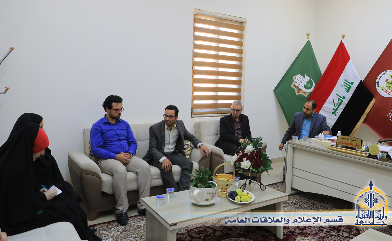 The Chancellor of Al-Muthanna University (The Dean of Administration and Economics College at the University of Warith Alanbiyaa, Previously) Dr. Amer Al-Atwi visited the University of Warith Alanbiyaa in order to open the horizons of cooperation between the two universities. Dr. Amer Al-Atwi met the President of University of Warith Alanbiyaa, Professor Talib Hassan Musa and the Administrative Assistant. Al-Muthanna University president, said: