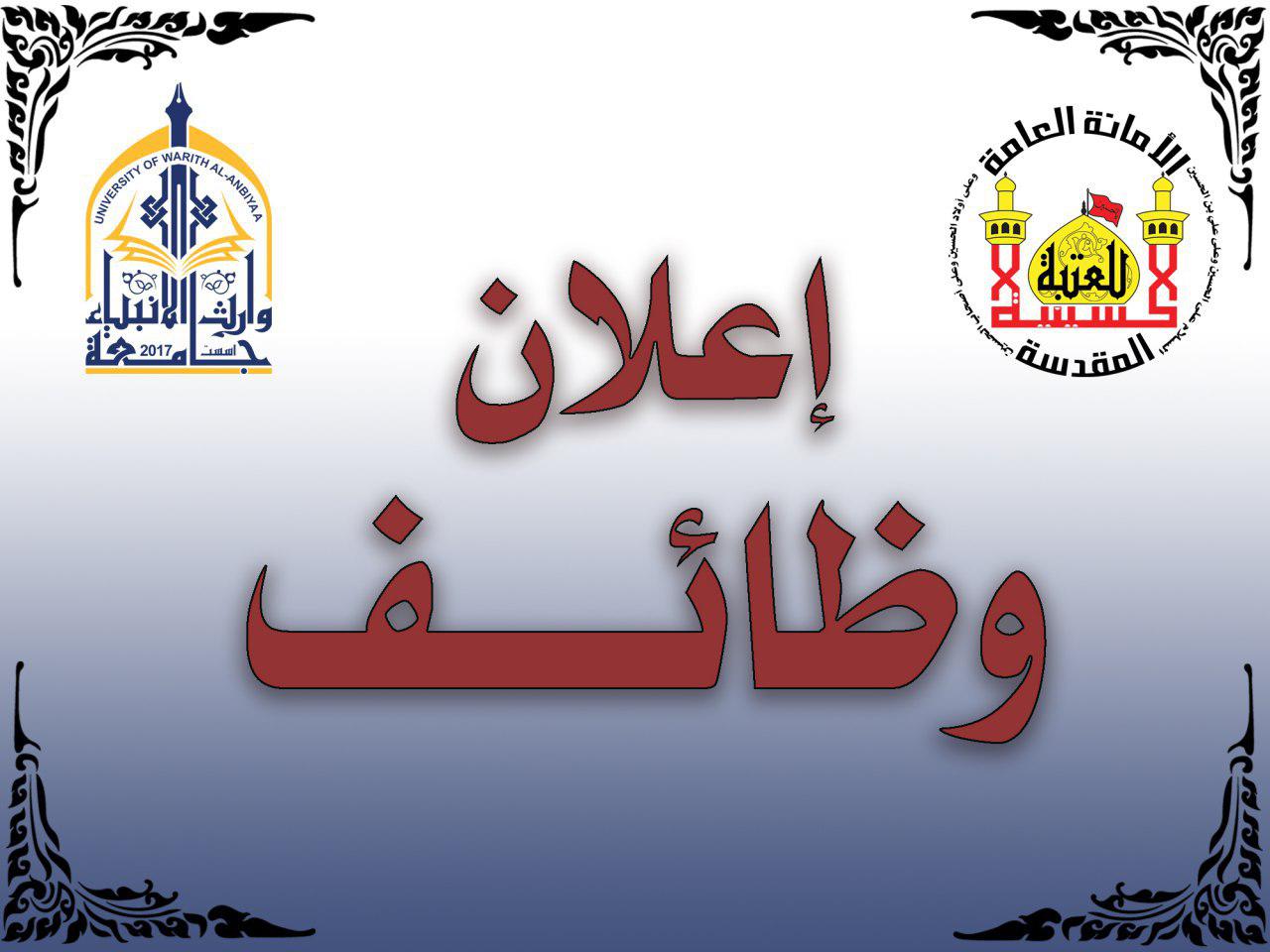 New career opportunities are available at the University of Warith Alanbiyaa which is affiliated to the General Secretariat of Imam Hussein Holy Shrine. Three vacancies are available for applicants who hold master or bachelor degree to employ in the following university departments.