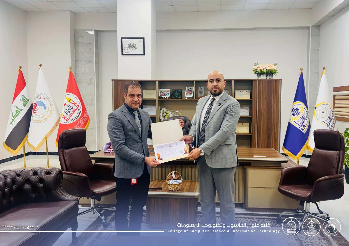Faculty members from the College of Management and Economics, Department of Business Administration, Mr. Hussein Mohammed Ali and Mr. Ali Aziz Al-Kalkawi, participated in the "International Conference on New Developments in Humanities," hosted by the University of Tehran with wide participation from various Arab and international countries.